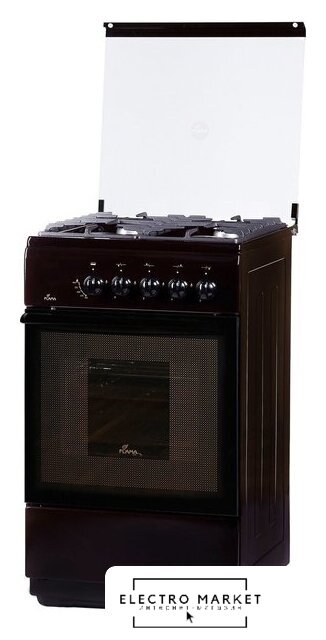 газовая панель + газовый духовой шкаф, поверхность: эмалированная сталь, крышка из закалённого стекла, управление механическое, без таймера, размеры (ШхГхВ): 50x60x85 см, цвет коричневый