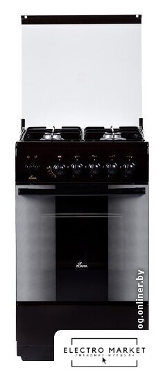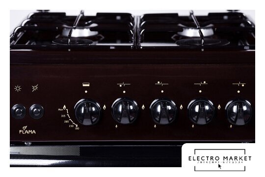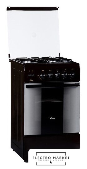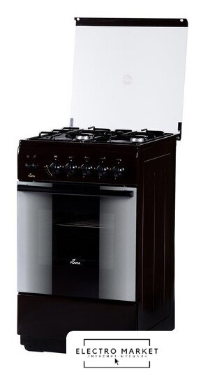 газовая панель + электрический духовой шкаф, газ-контроль конфорок, поверхность: эмалированная сталь, щиток, управление механическое, без таймера, размеры (ШхГхВ): 60x60x85 см, цвет коричневый