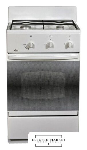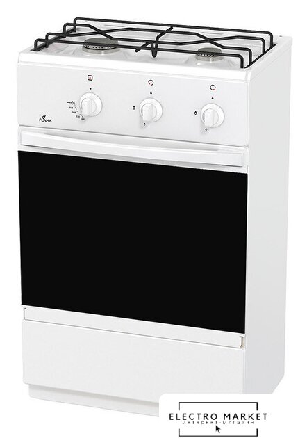 газовая панель + электрический духовой шкаф, поверхность: эмалированная сталь, щиток, управление механическое, без таймера, размеры (ШхГхВ): 50x40x85 см, цвет белый