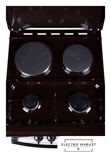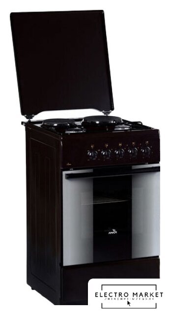 газ+электро панель + электрический духовой шкаф, поверхность: эмалированная сталь, щиток, управление механическое, без таймера, размеры (ШхГхВ): 50x60x85 см, цвет коричневый