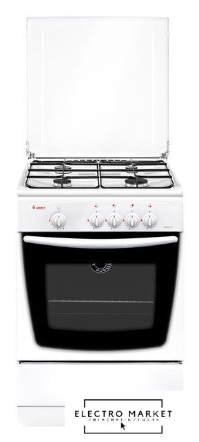 газовая панель + газовый духовой шкаф, газ-контроль конфорок, поверхность: эмалированная сталь, крышка из закалённого стекла, управление механическое, таймер механический, размеры (ШхГхВ): 50x60x85 см, цвет белый