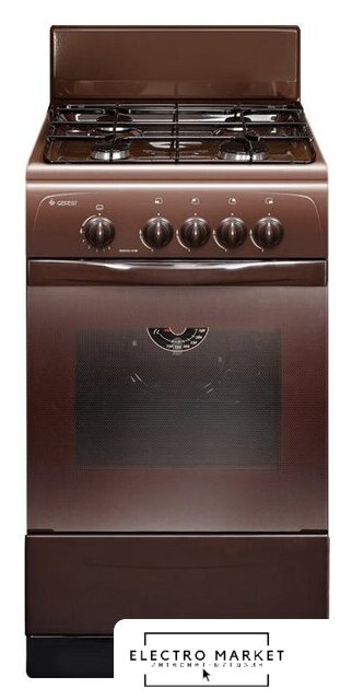 газовая панель + газовый духовой шкаф, поверхность: эмалированная сталь, крышка из эмалированной стали, управление механическое, без таймера, размеры (ШхГхВ): 60x60x85 см, цвет коричневый