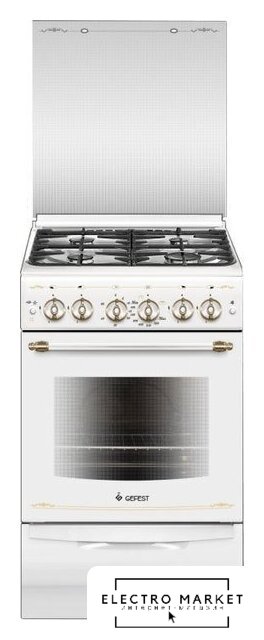 газовая панель + электрический духовой шкаф, газ-контроль конфорок, поверхность: эмалированная сталь, крышка из эмалированной стали, управление механическое, таймер механический, размеры (ШхГхВ): 50x58.5x85 см, цвет белый