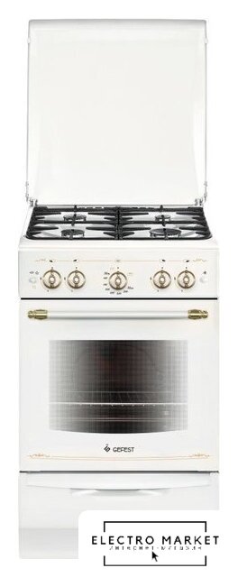 газовая панель + электрический духовой шкаф, газ-контроль конфорок, поверхность: эмалированная сталь, управление механическое, без таймера, размеры (ШхГхВ): 60x63x87 см, цвет белый