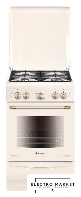 газовая панель + газовый духовой шкаф, газ-контроль конфорок, поверхность: эмалированная сталь, крышка из закалённого стекла, управление механическое, таймер механический, размеры (ШхГхВ): 51x55x85 см, цвет белый