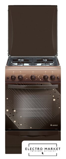 газовая панель + газовый духовой шкаф, поверхность: эмалированная сталь, крышка из эмалированной стали, управление механическое, без таймера, размеры (ШхГхВ): 60x60x85 см, цвет коричневый