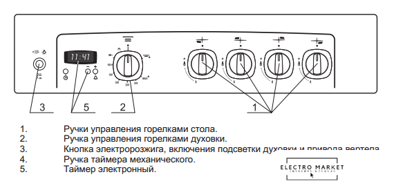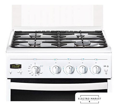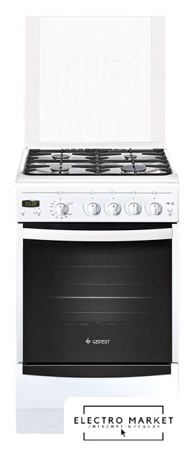 газовая панель + электрический духовой шкаф, поверхность: эмалированная сталь, крышка из закалённого стекла, управление механическое, таймер механический, размеры (ШхГхВ): 50x53x85 см, цвет белый