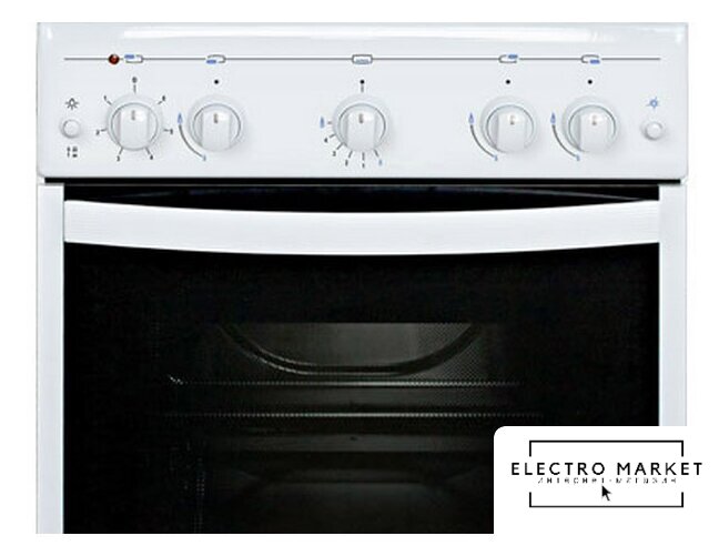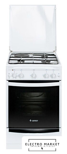 газ+электро панель + электрический духовой шкаф, поверхность: эмалированная сталь, щиток, управление механическое, без таймера, размеры (ШхГхВ): 50x60x85 см, цвет белый