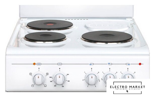электрическая панель + электрический духовой шкаф, поверхность: эмалированная сталь, крышка из эмалированной стали, энергопотребление A, управление механическое, без таймера, размеры (ШхГхВ): 51x55x85 см, цвет белый