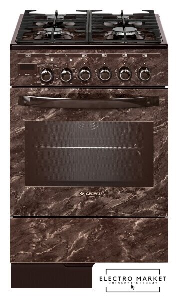 газовая панель + электрический духовой шкаф, поверхность: эмалированная сталь, крышка из закалённого стекла, управление механическое, без таймера, размеры (ШхГхВ): 50x60x85 см