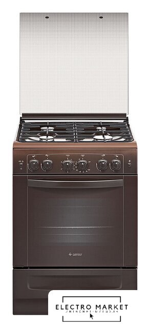 газовая панель + газовый духовой шкаф, газ-контроль конфорок, поверхность: эмалированная сталь, крышка из эмалированной стали, управление механическое, без таймера, размеры (ШхГхВ): 60x60x85 см, цвет коричневый
