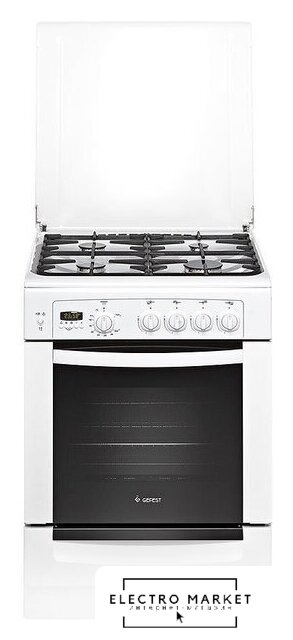газовая панель + газовый духовой шкаф, газ-контроль конфорок, поверхность: эмалированная сталь, крышка из закалённого стекла, управление механическое, таймер электронный, размеры (ШхГхВ): 60x60x85 см, цвет белый