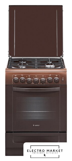 газовая панель + газовый духовой шкаф, поверхность: эмалированная сталь, крышка из эмалированной стали, управление механическое, без таймера, размеры (ШхГхВ): 60x60x85 см, цвет коричневый
