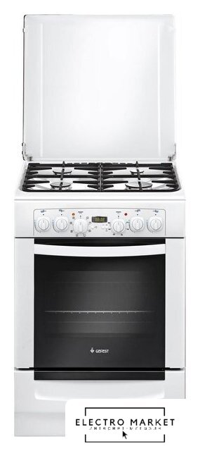 газовая панель + газовый духовой шкаф, газ-контроль конфорок, поверхность: эмалированная сталь, крышка из закалённого стекла, управление механическое, таймер электронный, размеры (ШхГхВ): 50x58.5x85 см, цвет белый