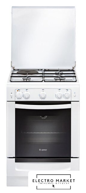 газ+электро панель + электрический духовой шкаф, поверхность: эмалированная сталь, крышка из эмалированной стали, управление механическое, без таймера, размеры (ШхГхВ): 50x60x85 см