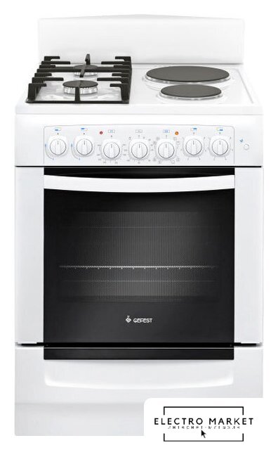 газ+электро панель + газовый/электрический духовой шкаф, поверхность: эмалированная сталь, управление механическое, таймер, размеры (ШхГхВ): 60x60x85 см