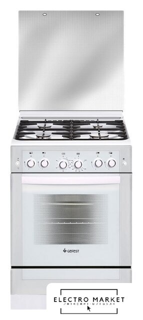 газовая панель + электрический духовой шкаф, поверхность: эмалированная сталь, крышка из закалённого стекла, управление механическое, без таймера, размеры (ШхГхВ): 50x60x85 см