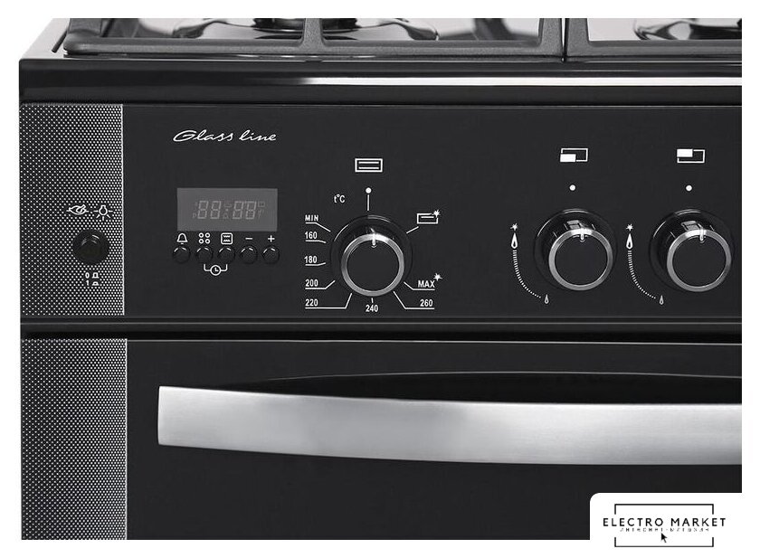 газовая панель + электрический духовой шкаф, газ-контроль конфорок, поверхность: эмалированная сталь, крышка из закалённого стекла, энергопотребление A, управление механическое, таймер электронный, размеры (ШхГхВ): 60x60x85 см, цвет белый