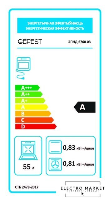 | Объём духового шкафа | 55 л |