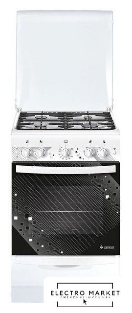 газовая панель + электрический духовой шкаф, поверхность: эмалированная сталь, крышка из эмалированной стали, энергопотребление A, управление механическое, без таймера, размеры (ШхГхВ): 50x60x85 см, цвет белый