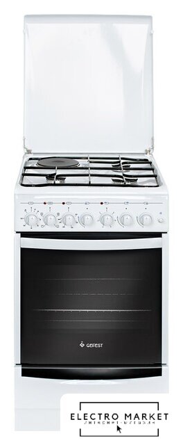 газ+электро панель + электрический духовой шкаф, поверхность: эмалированная сталь, крышка из эмалированной стали, управление механическое, без таймера, размеры (ШхГхВ): 50x60x85 см