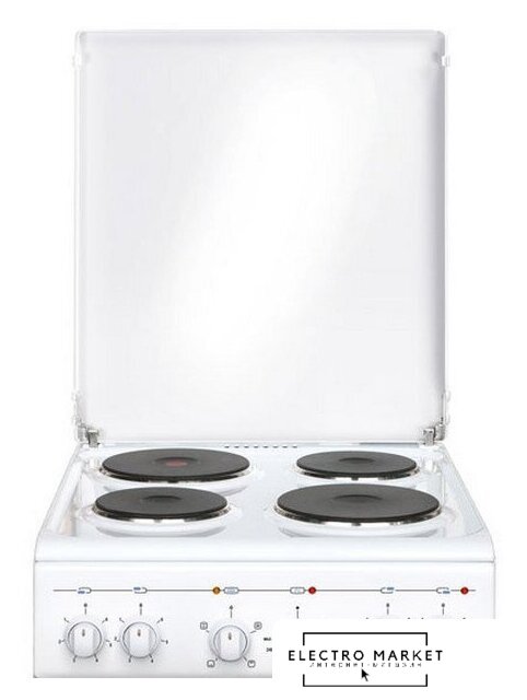 электрическая панель + электрический духовой шкаф, поверхность: эмалированная сталь, крышка из эмалированной стали, управление механическое, таймер механический, размеры (ШхГхВ): 50x58.5x85 см, цвет белый