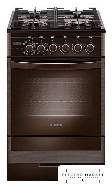 газовая панель + газовый духовой шкаф, поверхность: эмалированная сталь, крышка из закалённого стекла, управление механическое, таймер механический, размеры (ШхГхВ): 60x60x85 см, цвет коричневый