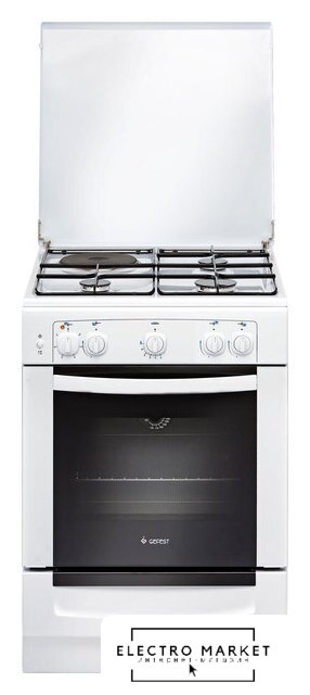 газ+электро панель + электрический духовой шкаф, поверхность: эмалированная сталь, крышка из закалённого стекла, энергопотребление A, управление механическое, без таймера, размеры (ШхГхВ): 50x60x85 см