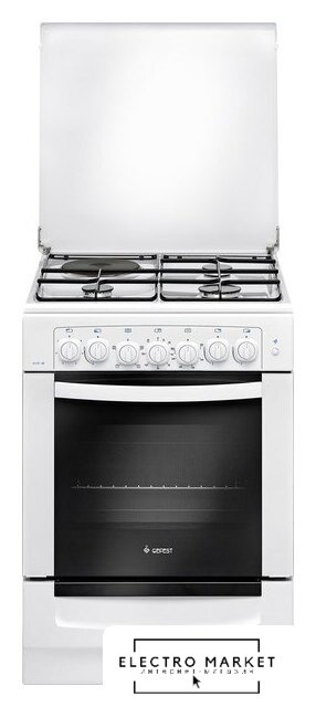 газ + электро панель + электрический духовой шкаф, газ-контроль конфорок, поверхность: эмалированная сталь, крышка из эмалированной стали, управление механическое, без таймера, размеры (ШхГхВ): 50x59.4x85 см, цвет белый
