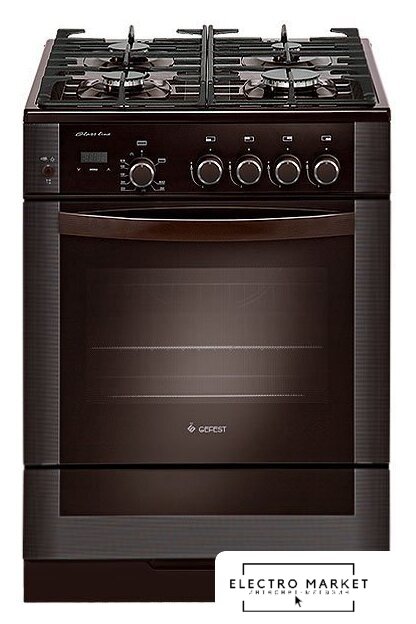 газовая панель + газовый духовой шкаф, поверхность: эмалированная сталь, крышка из закалённого стекла, управление механическое, таймер механический, размеры (ШхГхВ): 60x60x85 см, цвет коричневый