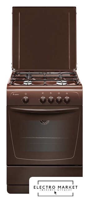 газовая панель + газовый духовой шкаф, поверхность: эмалированная сталь, крышка из эмалированной стали, управление механическое, без таймера, размеры (ШхГхВ): 60x60x85 см, цвет коричневый