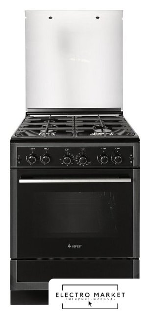 газовая панель + газовый духовой шкаф, поверхность: эмалированная сталь, крышка из закалённого стекла, управление механическое, таймер механический, размеры (ШхГхВ): 60x60x85 см, цвет черный