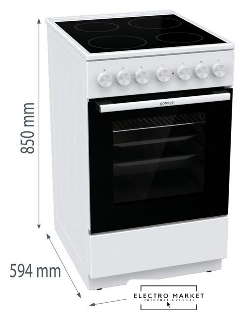 HiLight панель + электрический духовой шкаф, поверхность: cтеклокерамика, энергопотребление A, управление электронное, таймер электронный, размеры (ШхГхВ): 50x58.5x85 см, цвет белый