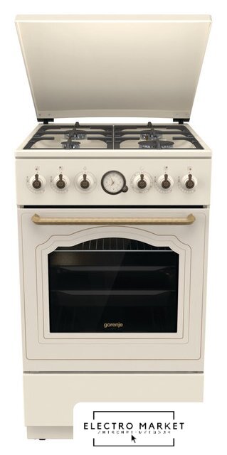 газовая панель + электрический духовой шкаф, поверхность: эмалированная сталь, крышка из эмалированной стали, энергопотребление A, управление механическое, таймер, размеры (ШхГхВ): 50x59.4x85 см, цвет бежевый