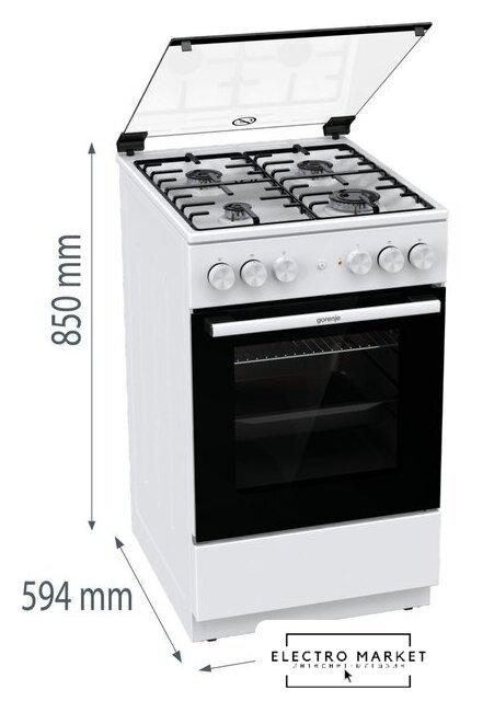 газовая панель + газовый духовой шкаф, поверхность: эмалированная сталь, крышка из закалённого стекла, управление механическое, без таймера, размеры (ШхГхВ): 50x50x85 см