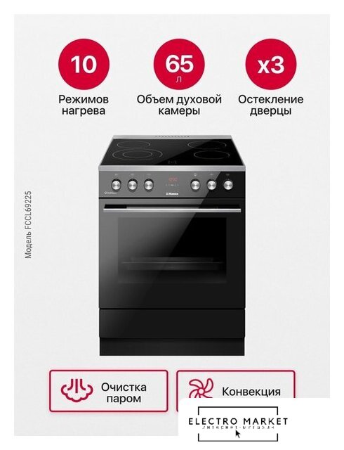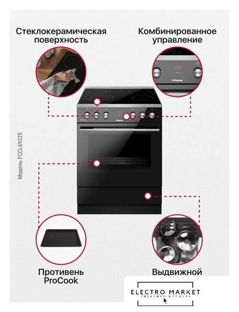 HiLight панель + электрический духовой шкаф, поверхность: cтеклокерамика, энергопотребление A, управление механическое, без таймера, размеры (ШхГхВ): 60x60x85 см, цвет серый