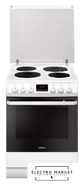 электрическая панель + электрический духовой шкаф, поверхность: эмалированная сталь, крышка из эмалированной стали, энергопотребление A, управление механическое, без таймера, размеры (ШхГхВ): 60x60x85 см, цвет белый