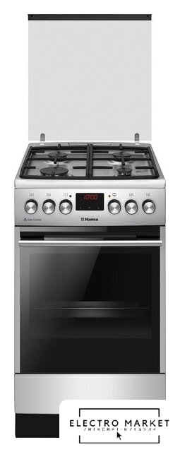 газовая панель + электрический духовой шкаф, газ-контроль конфорок, поверхность: нержавеющая сталь, крышка из закалённого стекла, энергопотребление A, управление механическое, таймер электронный, размеры (ШхГхВ): 50x60x85 см, цвет нержавеющая сталь