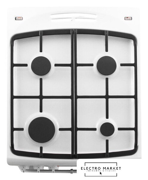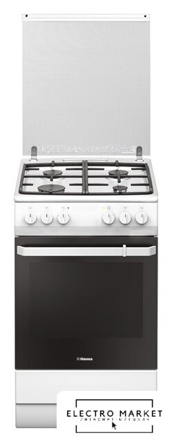 газовая панель + электрический духовой шкаф, газ-контроль конфорок, поверхность: эмалированная сталь, крышка из эмалированной стали, управление механическое, таймер механический, размеры (ШхГхВ): 50x58.5x85 см, цвет белый
