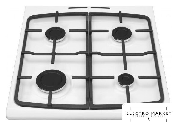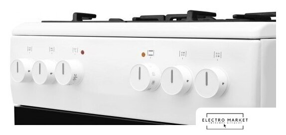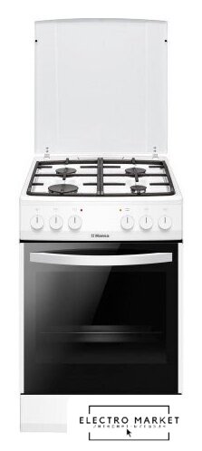 газовая панель + электрический духовой шкаф, поверхность: эмалированная сталь, крышка из закалённого стекла, энергопотребление A, управление механическое, без таймера, размеры (ШхГхВ): 50x60x85 см, цвет белый