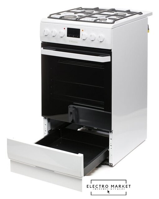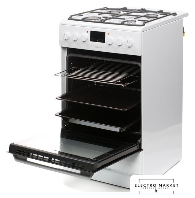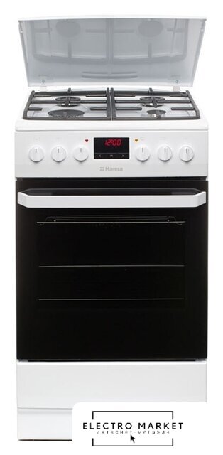газовая панель + электрический духовой шкаф, газ-контроль конфорок, поверхность: эмалированная сталь, крышка из закалённого стекла, энергопотребление A, управление электронное, таймер электронный, размеры (ШхГхВ): 60x60x85 см, цвет кремовый