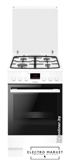газовая панель + электрический духовой шкаф, газ-контроль конфорок, поверхность: эмалированная сталь, крышка из эмалированной стали, энергопотребление A, управление механическое, таймер механический, размеры (ШхГхВ): 50x60x85 см, цвет белый
