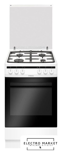 газовая панель + электрический духовой шкаф, поверхность: эмалированная сталь, крышка из закалённого стекла, управление механическое, без таймера, размеры (ШхГхВ): 50x60x85 см