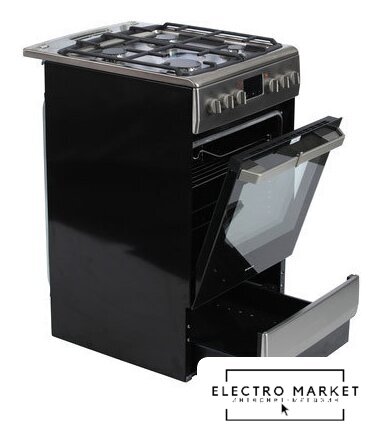 газовая панель + электрический духовой шкаф, газ-контроль конфорок, поверхность: эмалированная сталь, крышка из эмалированной стали, энергопотребление A, управление электронное, таймер электронный, размеры (ШхГхВ): 50x60x85 см