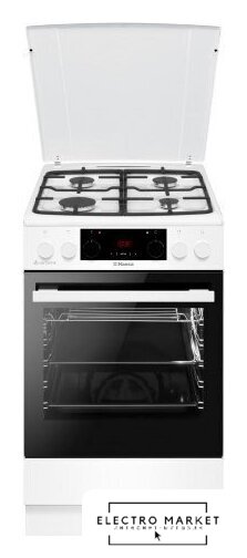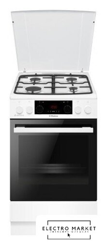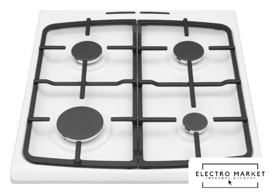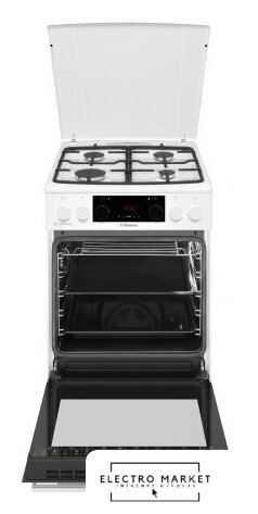 газовая панель + электрический духовой шкаф, газ-контроль конфорок, поверхность: эмалированная сталь, крышка из эмалированной стали, управление электронное, таймер электронный, размеры (ШхГхВ): 60x60x85 см, цвет белый