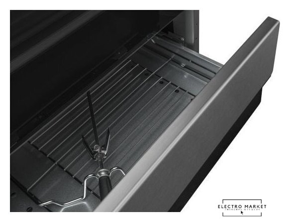 газ+электро панель + электрический духовой шкаф, поверхность: эмалированная сталь, крышка из закалённого стекла, управление механическое, без таймера, размеры (ШхГхВ): 50x60x85 см