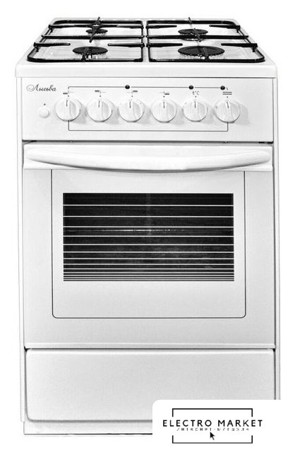 газовая панель + электрический духовой шкаф, газ-контроль конфорок, поверхность: эмалированная сталь, крышка из эмалированной стали, управление механическое, без таймера, размеры (ШхГхВ): 60x60x85 см, цвет белый
