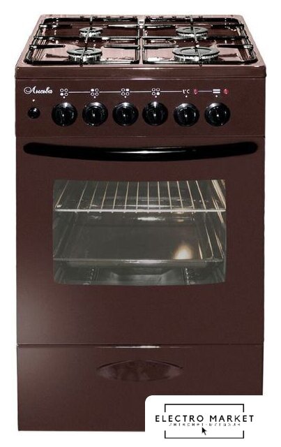 газовая панель + электрический духовой шкаф, поверхность: эмалированная сталь, крышка из эмалированной стали, управление механическое, таймер механический, размеры (ШхГхВ): 50x58.5x85 см, цвет коричневый