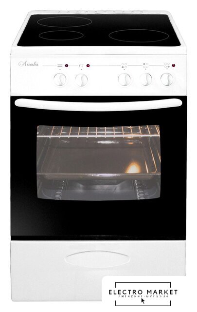 стеклокерамическая панель + электрический духовой шкаф, поверхность: cтеклокерамика, энергопотребление A, управление механическое, без таймера, размеры (ШхГхВ): 50x56x85 см, цвет белый