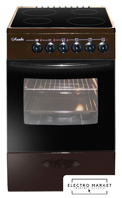 стеклокерамическая панель + электрический духовой шкаф, поверхность: cтеклокерамика, управление механическое, таймер механический, размеры (ШхГхВ): 50x60x84 см, цвет коричневый
